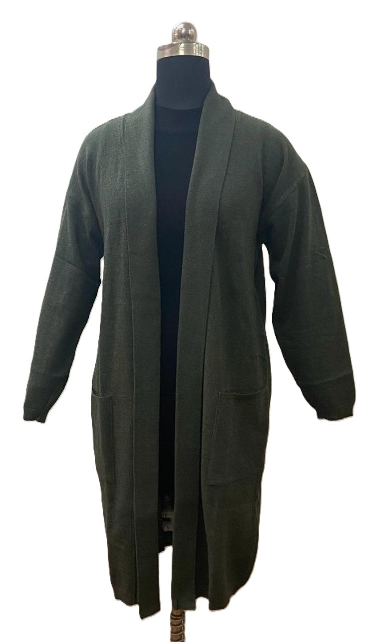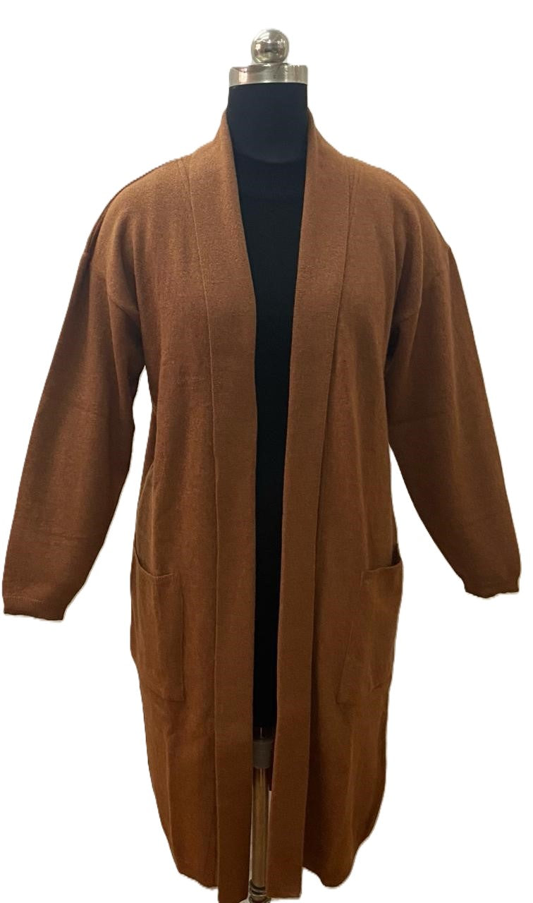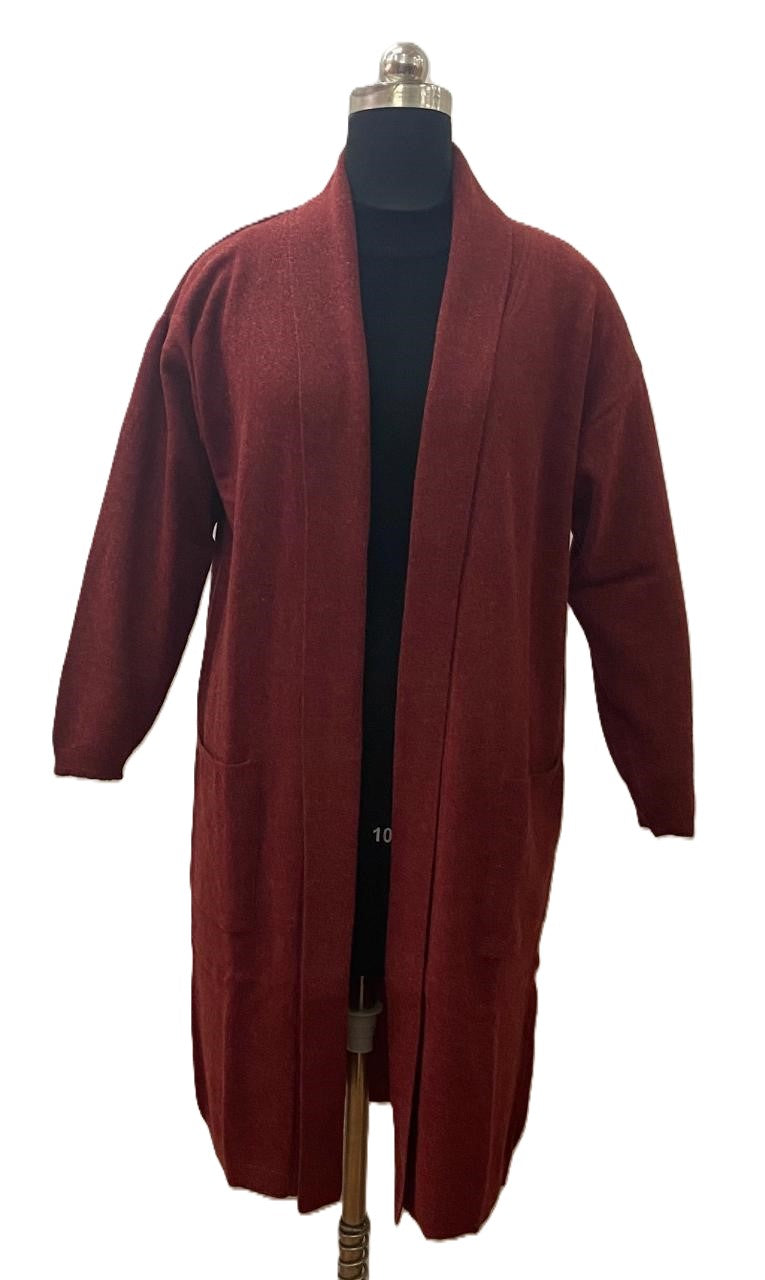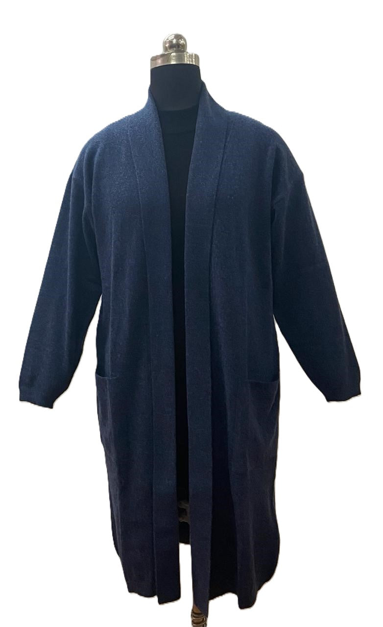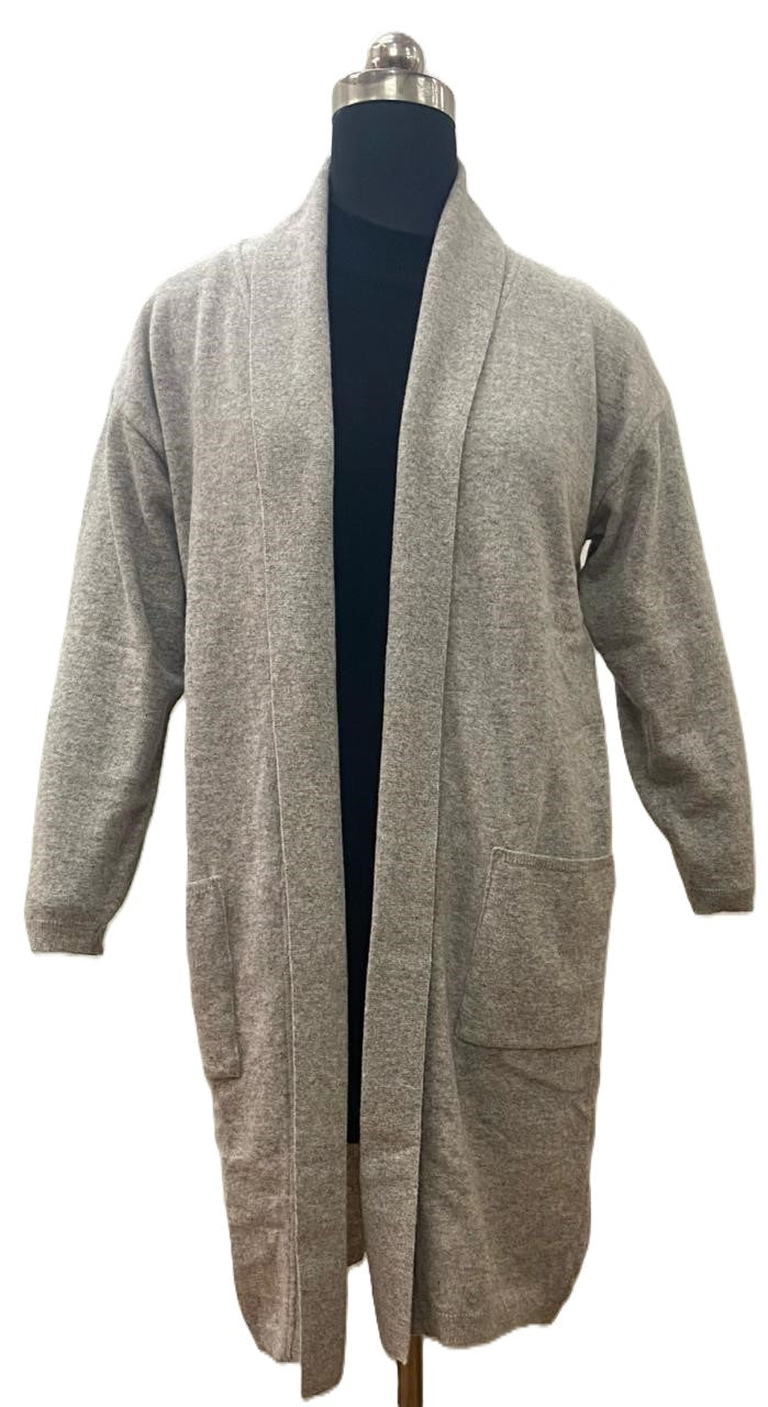 This lambswool cardigan features a long length and uniquely dropped shoulders for added style. Perfectly sized to fit all body types.
