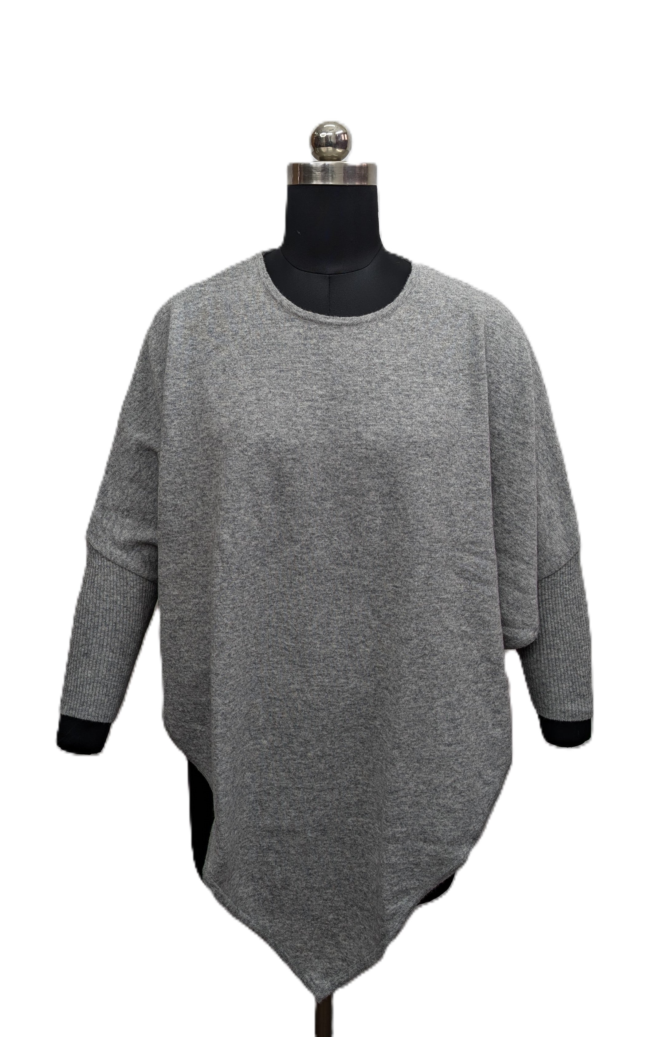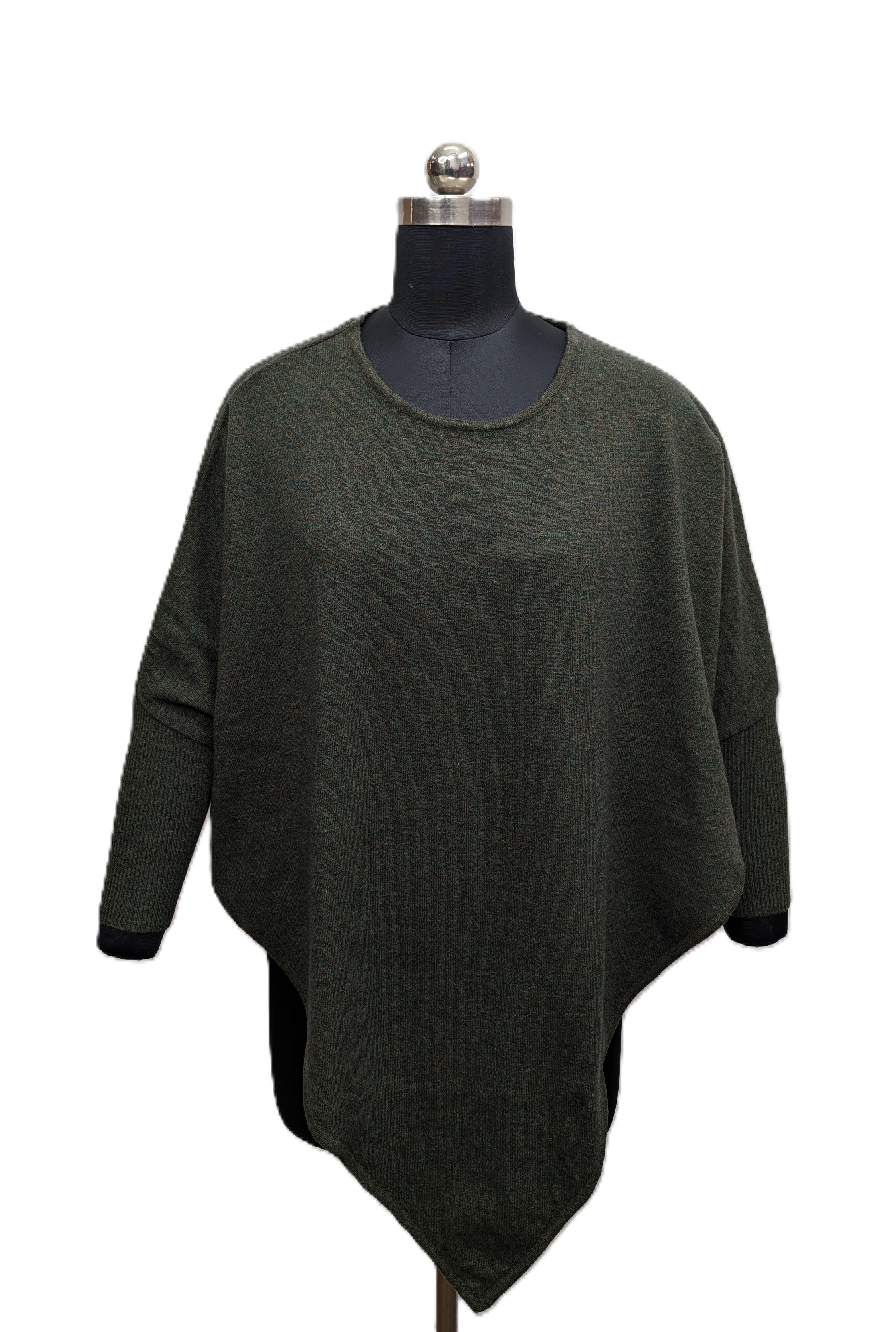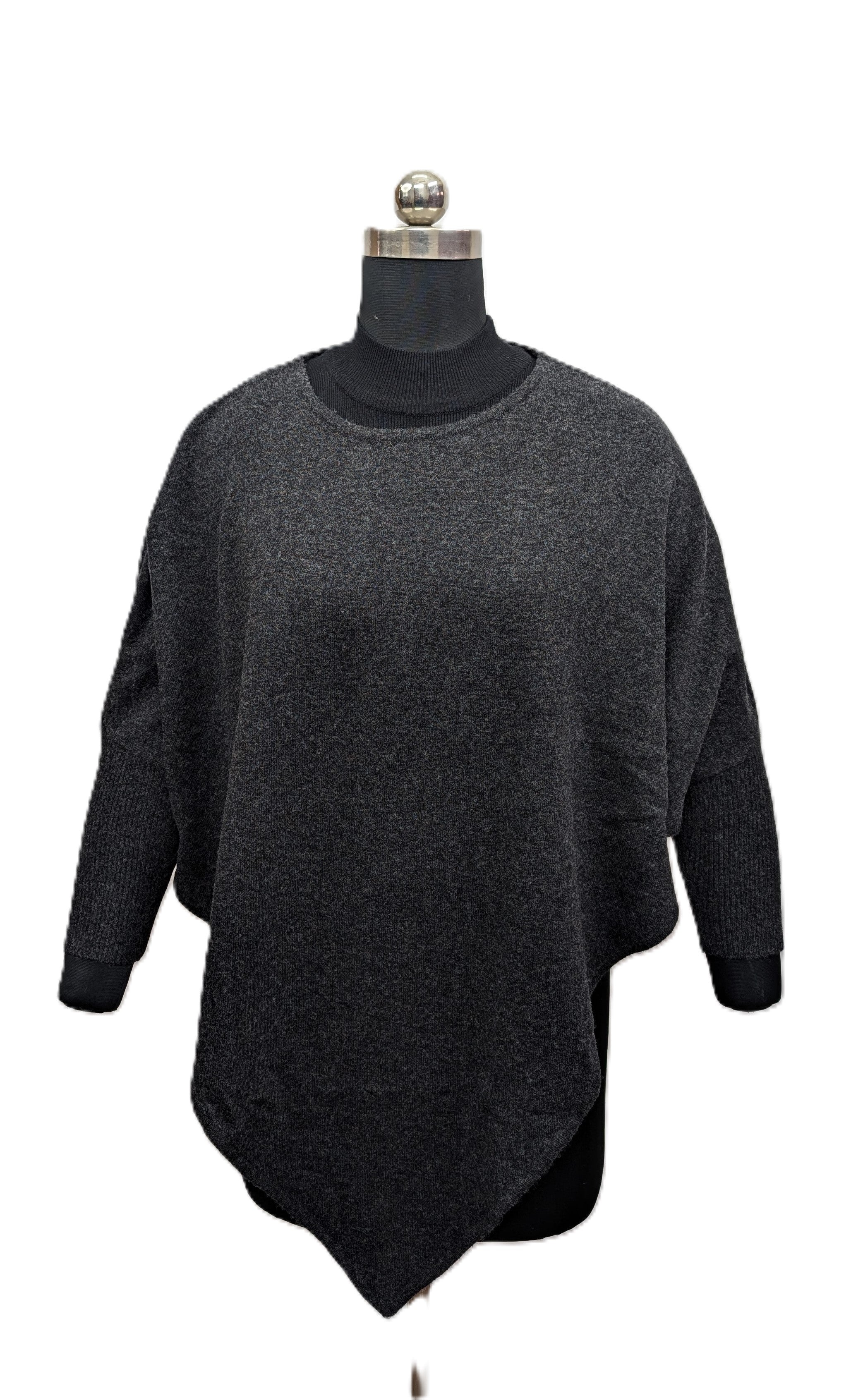 Model is 1.68 and wears size S Product form United Fashions Pty Ltd Poncho 2400 $90.00 ColorAnthra Quantity Add to cart DESCRIPTION This poncho, made with lambswool, features a V-shaped body and comes in a free size.